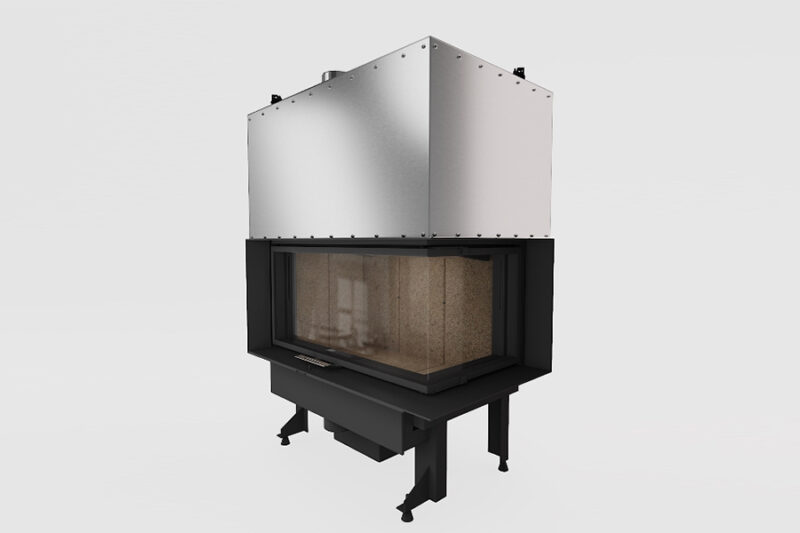 90’lık, sağ yanı camlı, asansörlü, çelik şömine haznesi.