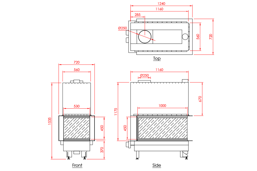 100’lük, 3 yönü camlı, EPI, asansörlü, çelik şömine haznesi.