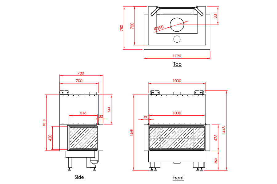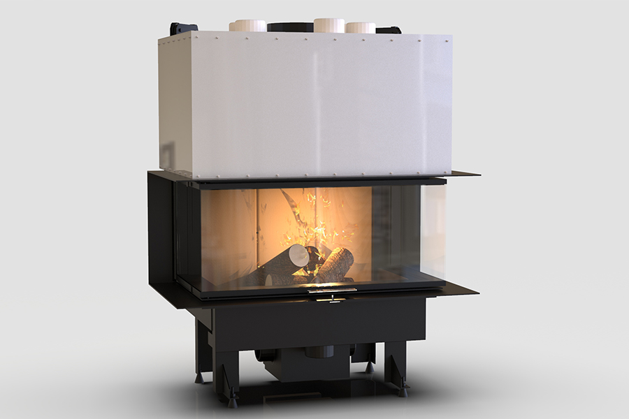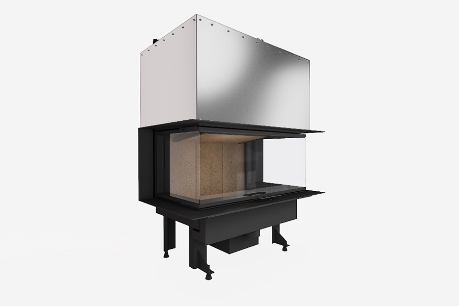 100’lük, 3 yönü camlı, asansörlü, çelik şömine haznesi.