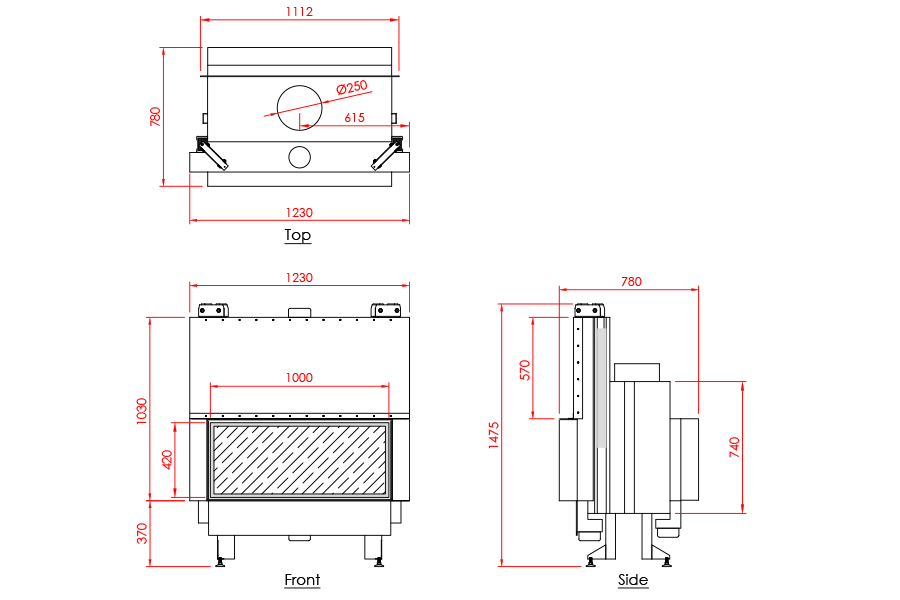 100’lük, düz, çift yönlü, asansörlü, çelik şömine haznesi.