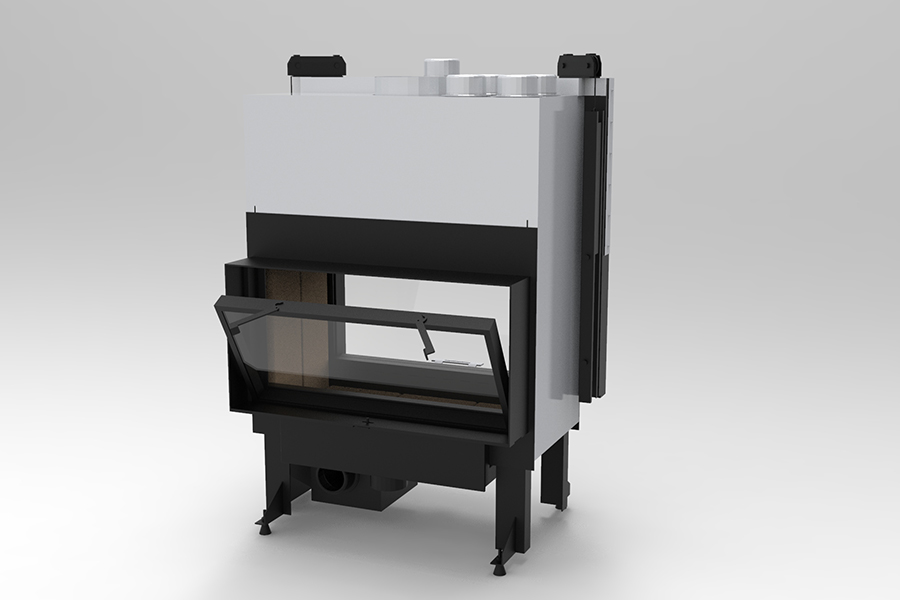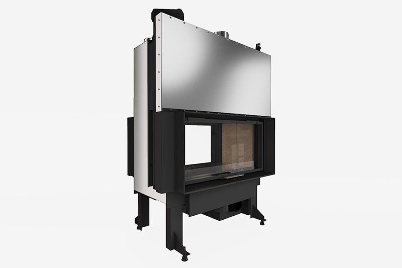 90’lık, düz, çift yönlü, asansörlü, çelik şömine haznesi.