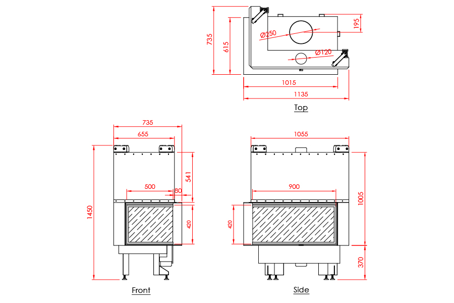 90’lık, sol yanı camlı, asansörlü, çelik şömine haznesi.