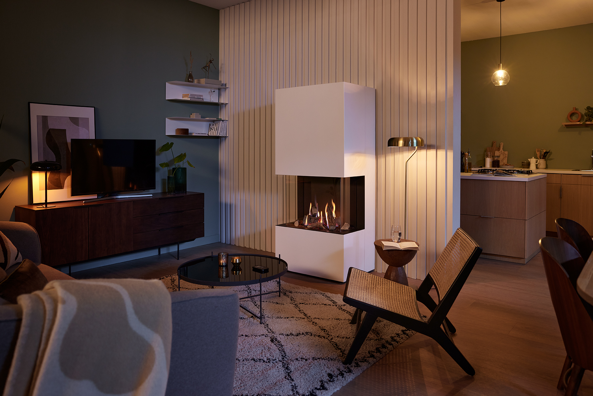 3 yönü camlı, modern doğalgazlı soba modeli.