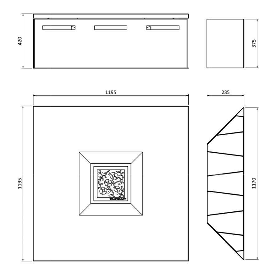 119,5 x 119,5 x 42,0 cm (GxDxY)